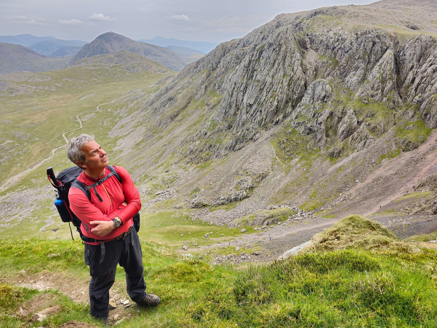 The author looking up at Mickledore Pikes Crag, Great Gable and the Lingmell Col path in the background July 18, 2023 1436 × 1077 The Savage Temple at the Heart of Scafell The author looking up at Mickledore Pikes Crag, Great Gable and the Lingmell Col path in the background – photo by Chris Butterfield The author looking up at Mickledore Pikes Crag, Great Gable and the Lingmell Col path in the background